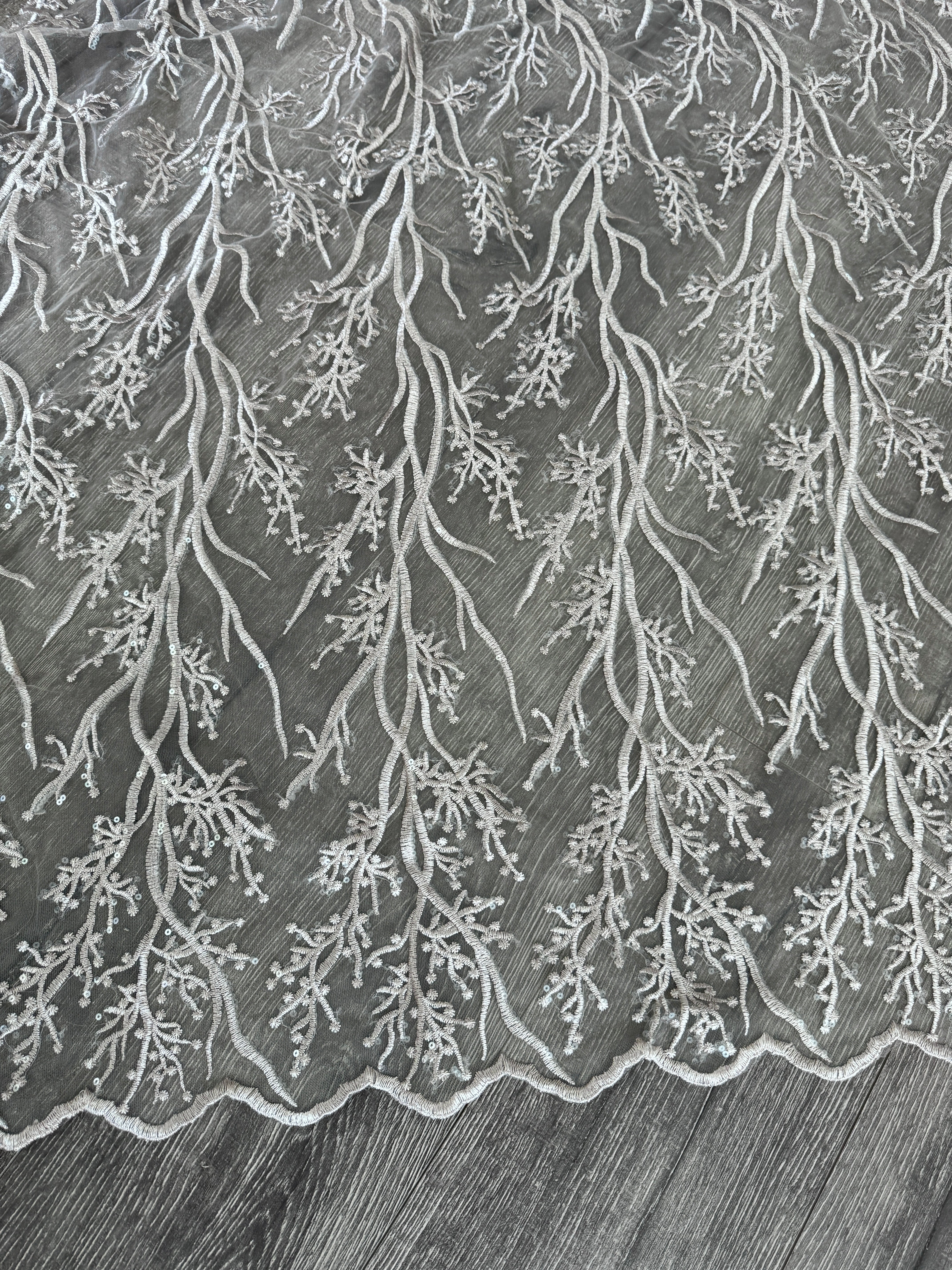 Silver Embroidered Branch Bridal Lace